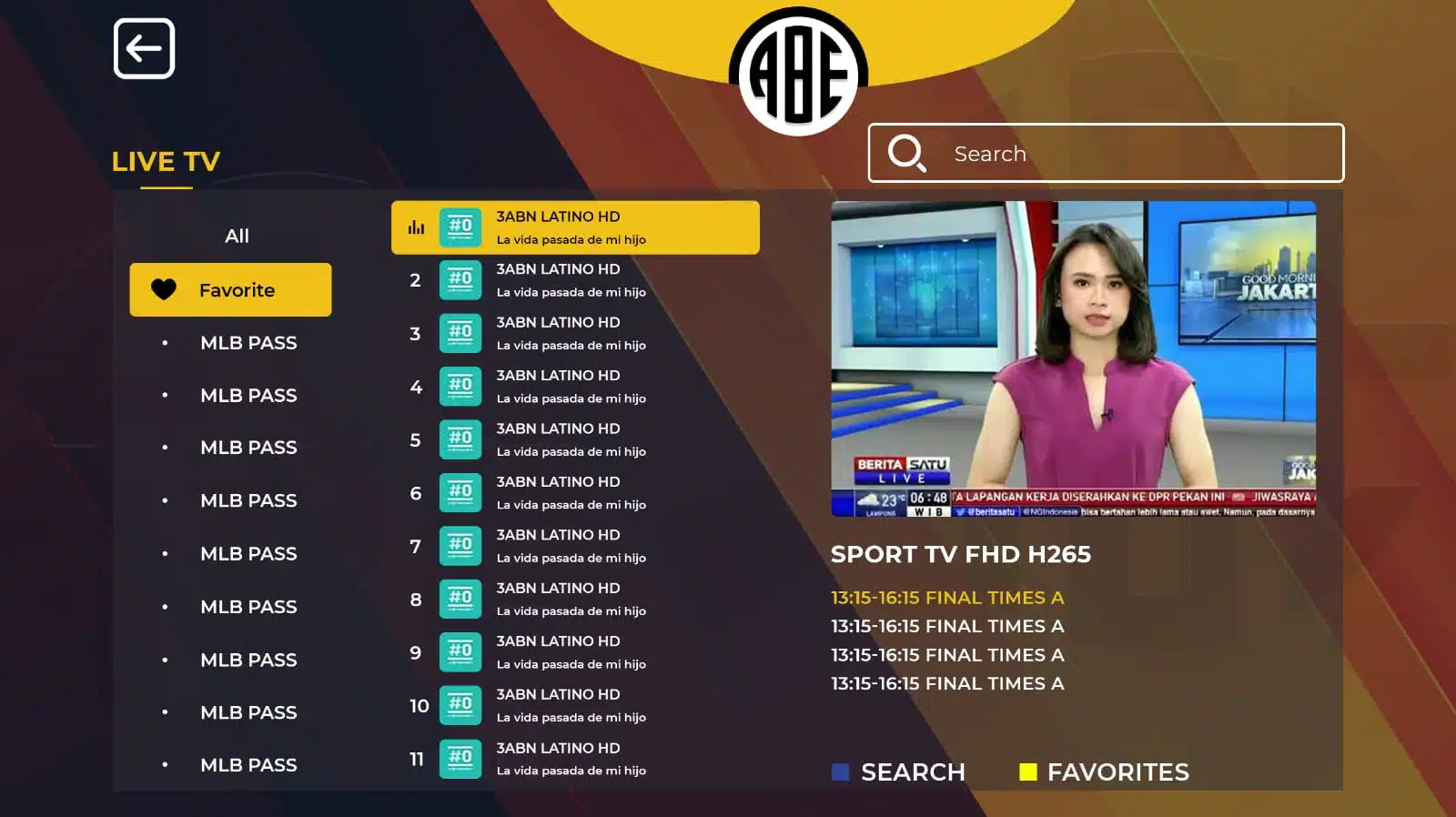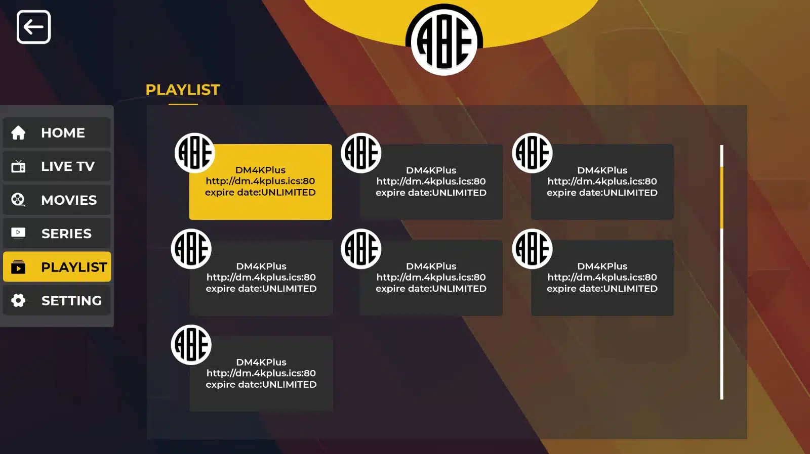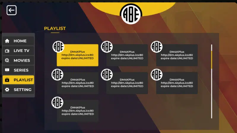 - Ouvrez l’application ABE PLAYER sur votre téléviseur.