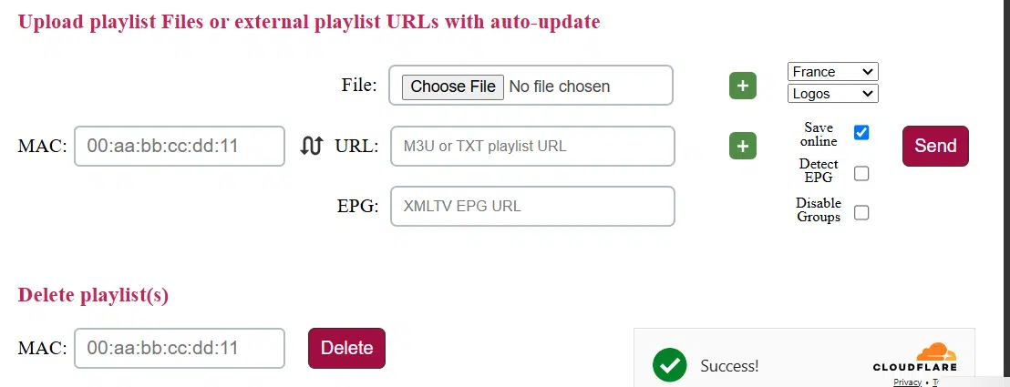 - Saisissez les identifiants de connexion URL m3u de la playlist que vous avez reçus par e-mail et clique sur Send